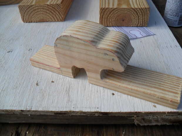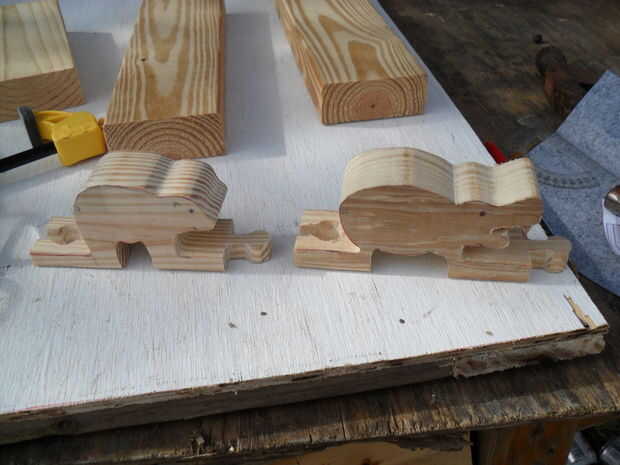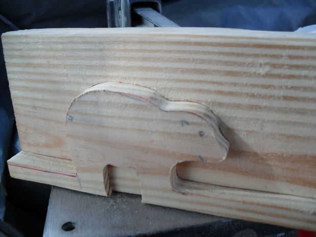Para recortar los animales se utilizó una sierra de contornear. Como siempre, tenga cuidado al usar sierras y equipos de potencia. Debido a que los conectores del puzzle eran rígidos y no permiten los coches del tren a girar correctamente, Iris eventualmente cambió el diseño a trabajar mejor.