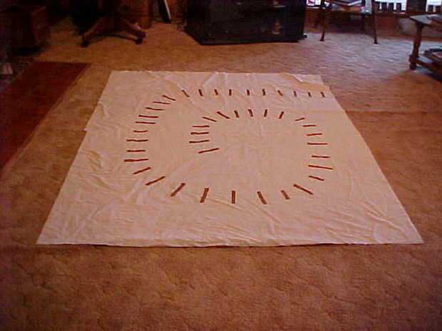 1) empecé con la pista en la parte superior de la cama. Estas fueron puestas en su lugar y cosidas en.