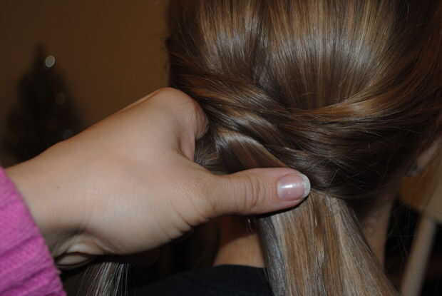 Paso 4: Mientras se mantiene las dos secciones de pelo, continúe repitiendo los pasos 2 y 3.