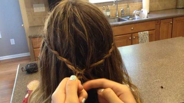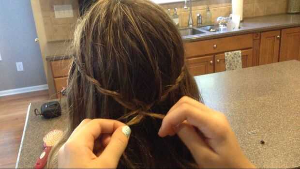 La pieza más cercana de la trenza de la torcedura en el lado izquierdo y añadir a la pieza de la trenza de la izquierda.