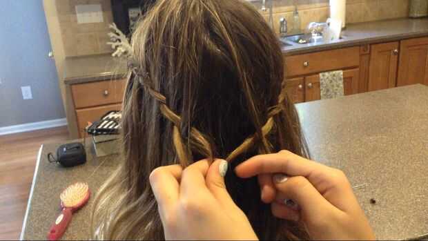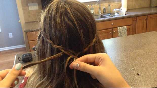 Repita en el otro lado, agarrar la pieza derecha más cercana y agregarlo a la trenza.