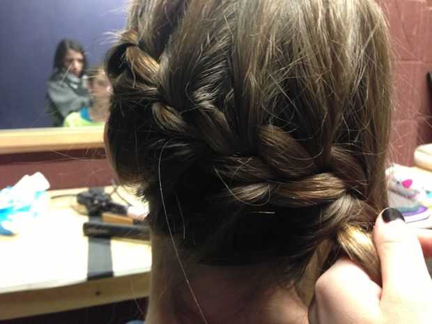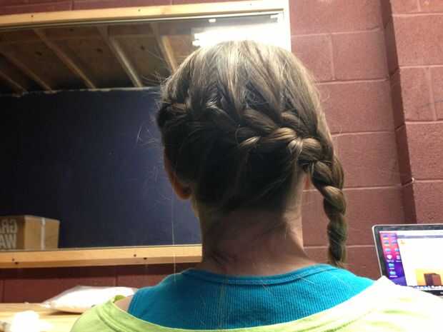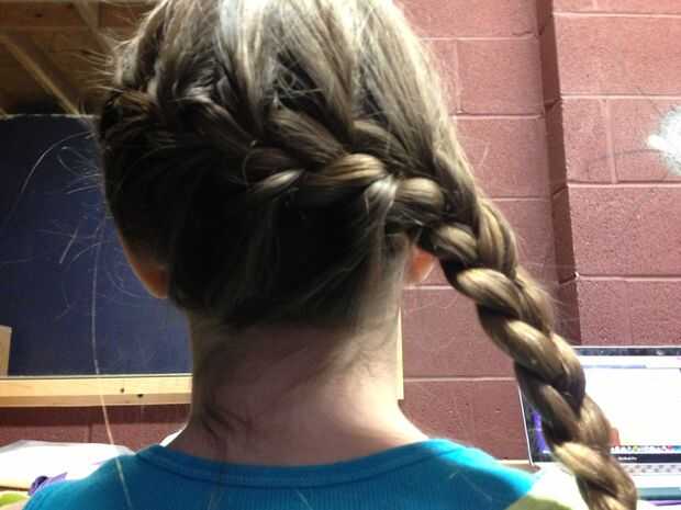 Repita este proceso alrededor de la cabeza hasta llegar a sin pelo a la izquierda y todo el pelo de la trenza francesa.