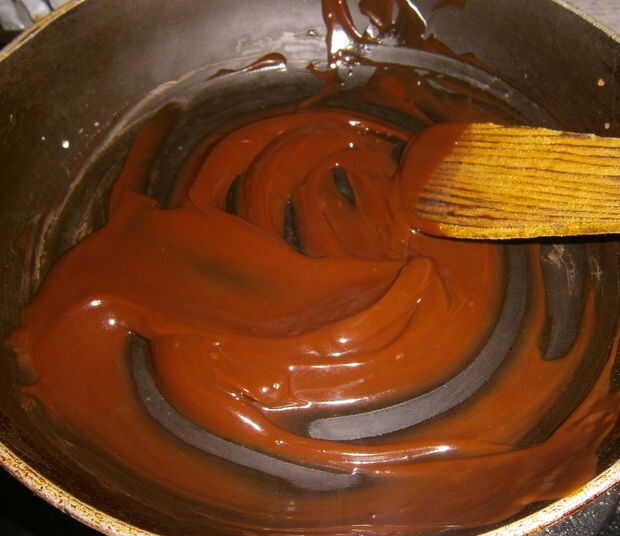 Agregar cacao en polvo, esencia de vainilla, azúcar y chocolate. Calentar a fuego medio. Seguir revolviendo hasta que empieza consiguiendo gruesa. Revuelva hasta que no queden grumos. Déjelo enfriar a temperatura ambiente.