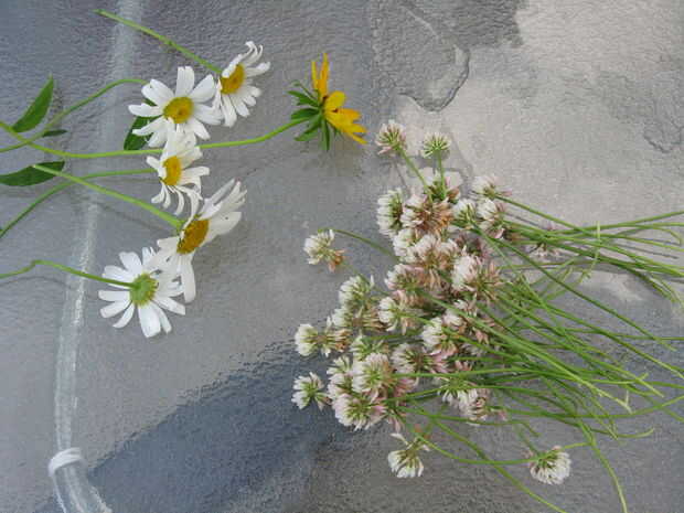 Como dije en la intro, todo lo que necesitas son flores.  Mayoría de las veces sólo escoger trébol de un campo de fútbol o parque.  (su por todas partes donde yo vivo).  Esta es la primera vez que he incorporado flores que no eran las malas hierbas también.  He hecho los de diente de León (porque las niñas pequeñas no importa) pero estornuda mucho después así evitarlo ahora.  Necesitan tener tallos por lo menos unas 3 pulgadas de largo.  La cantidad requerida varía con cabeza de cuánto se está haciendo y denso cómo desea que las flores que. También puede obtener el receptor de la corona para ayudar a recogerlos. Sólo terminé usando aproximadamente la mitad del trébol en esta foto.