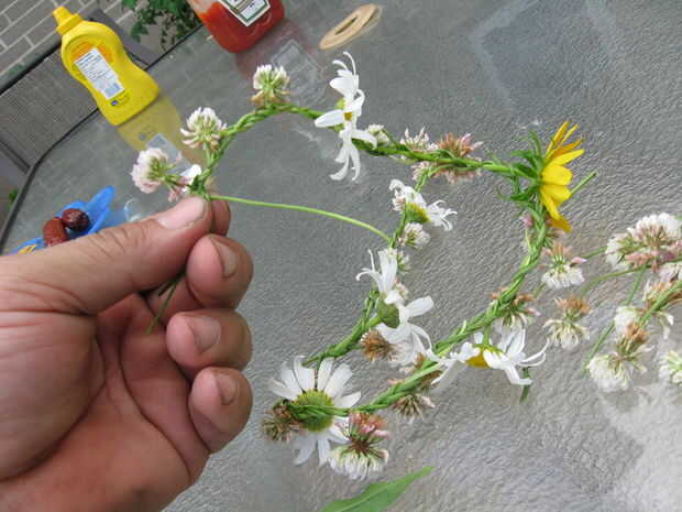 Trenzado corona o collar de flores de princesa. (4 / 6 paso)