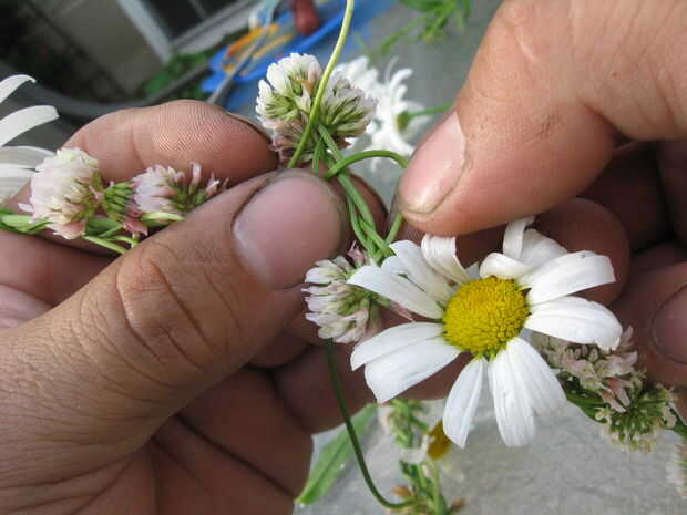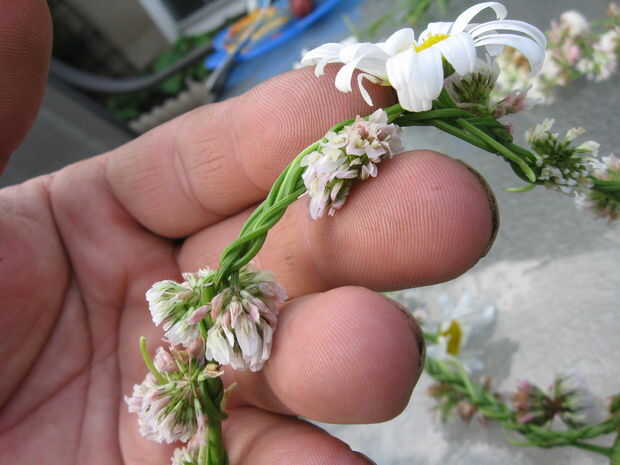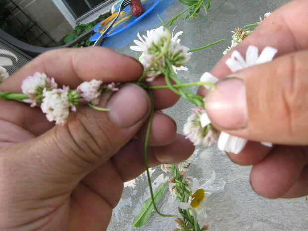 Esta es la parte más delicada, pero una vez que lo ha hecho 2 o 3 veces es fácil. Usted necesita tomar los extremos del tallo tiene y tejer en el extremo inicial de la corona. Elegir un tallo a la vez y siga uno de los tallos al comienzo, metiendo por todos los agujeros pasa la espiga de la partida. Cuando se hace bien, no será capaz de decir dónde está el empalme.