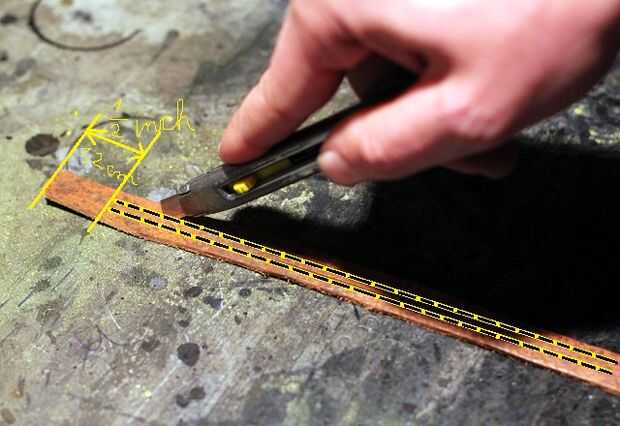 Al cortar la tira a lo largo dos veces cerca de 1/2 una pulgada (1, 2cm) desde la parte superior atravesando todo el camino, dividiendo la franja en 3 grupos iguales.