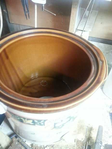 Después de se enfríe un poco la metes en el bote de encurtidos. Déjelo remojar unos 10 minutos. Sólo use utensilios de cobre o plástico para obtener su joyería de la salmuera. Nada provocará una reacción química que resulta en la pieza está cubierto de una fina capa de cobre. Evitar eso. Enjuagar y secar.