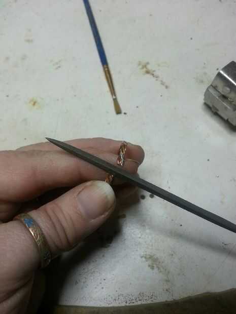 Para obtener una Junta de soldadura buena los extremos necesitan conocer perfectamente como sea posible así que archivo los extremos planos. Asegúrese de eliminar cualquier rebaba dejada por el cortador de alambre. Recuerde que un archivo sólo funciona en un movimiento hacia adelante por lo que no vio la herramienta hacia adelante y hacia atrás.