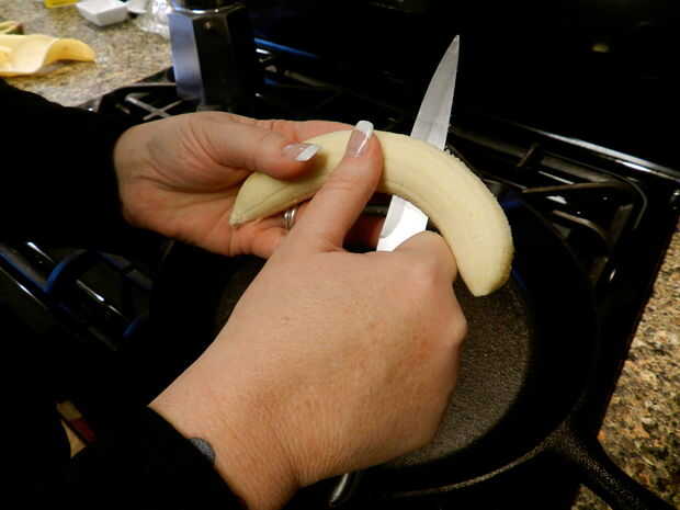 Paso 3: Pelar los plátanos y cortar por la mitad de lo largo.