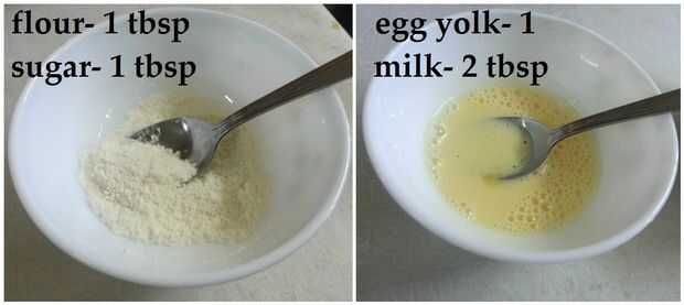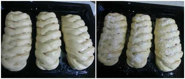 Para espolvorear, mezcle 1 cucharada de harina (todo uso), 1 cucharada de azúcar. Espolvorearlas sobre el moño trenzado.