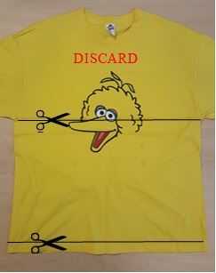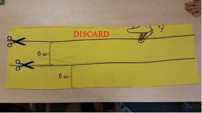 • Corte horizontal por debajo de las mangas y por encima de la costura de la parte inferior de la camiseta. Deseche la parte superior.