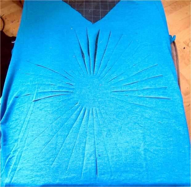 Si usted tiene un pedazo de madera o una almohadilla de corte, puede deslizarse que dentro de la camisa y luego trazar el diseño con una cuchilla de corte rodante. Si usted sólo trazar el diseño con alguna tiza y luego recortar con tijeras.