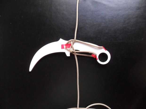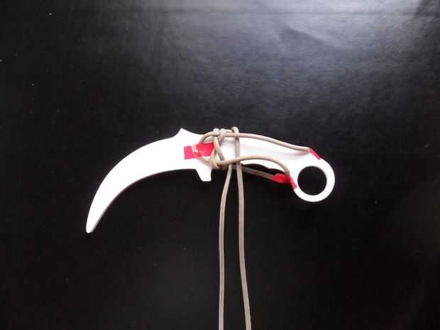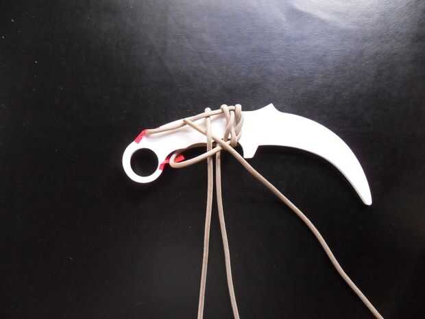 El cable que vino a través de desde abajo, pasado bajo la cuerda en el otro lado y ese lado irá sobre los longitudinales y los cables en el cable que viene en la parte superior.