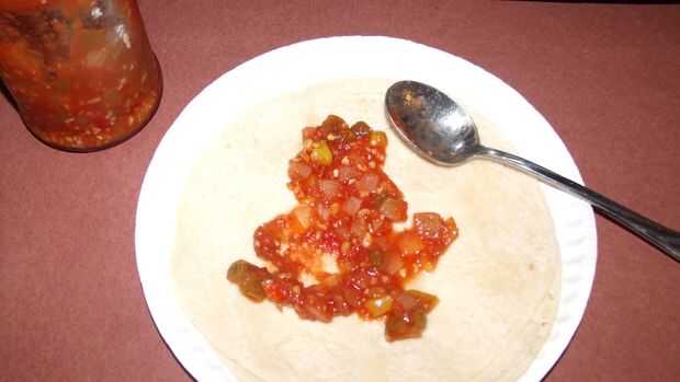 Coloque una tortilla y difunda en alguna salsa, cuánto por supuesto depende de su gusto.