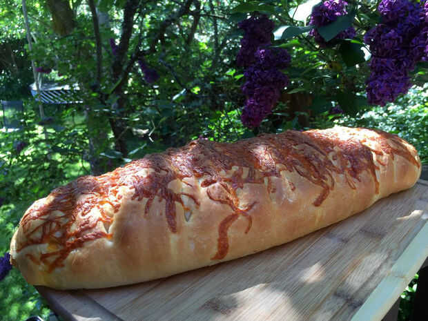 impresionante ajo, cebolla, parmesano pan trenzadolo que se necesita:-2 1/2 tazas de harina (no USE harina de levantamiento del uno mismo a menos que quiera ensuciar su pan)-2 cucharadas de azúcar-levadura seca de 1 (1/4 oz) paquete-1/4 cucharadita d