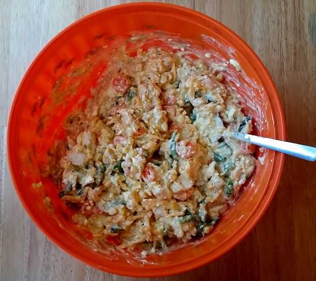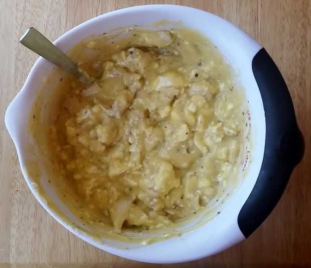 c. Añadir pollo picado en un tazón pequeño mezcla.
