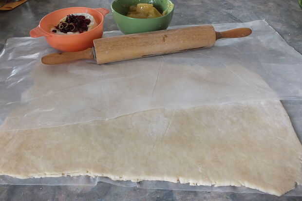 Paso 1: Rollo de hojaldre entre 2 hojas de papel encerado ligeramente espolvoreada con harina.