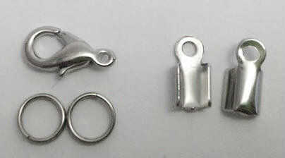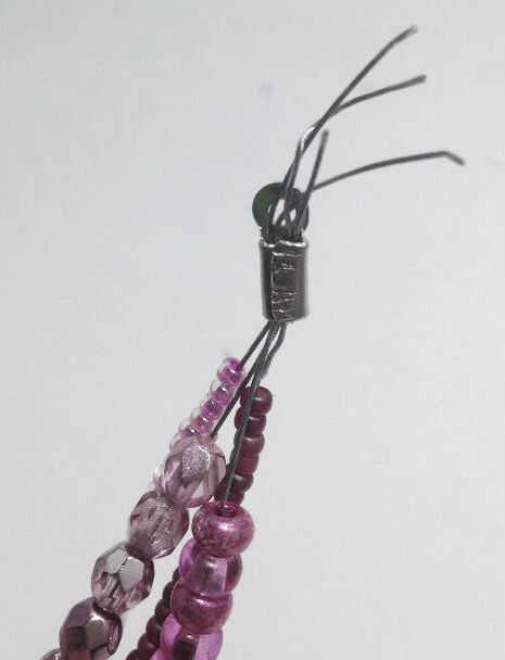 Después de todas las tendencias están moldeadas desatar uno de los extremos de cada filamento y tratan de torcer los extremos todos juntos así que puedo conseguirlos todos en los cierres (cuadros 1 y 2). Este es un buen lugar para agregar un poco de pegamento de joyería a los cables antes de doblar los bordes de los cierres sobre y prensar con tus pinzas de joyería.