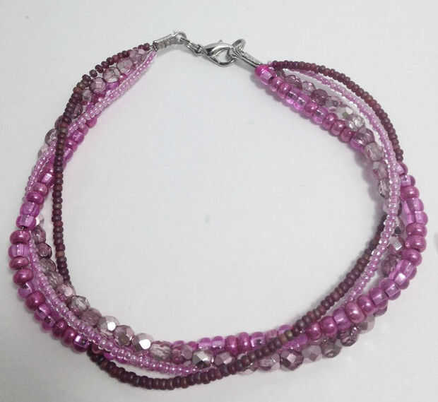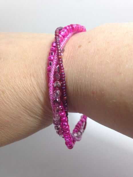 La técnica que se utiliza para hacer esta pulsera puede utilizarse para hacer un montón de pulseras diferentes. Usted puede experimentar con el patrón, color y granos. Para esta pulsera usé granos del hierro bastante pesado pero una perla funcionaría