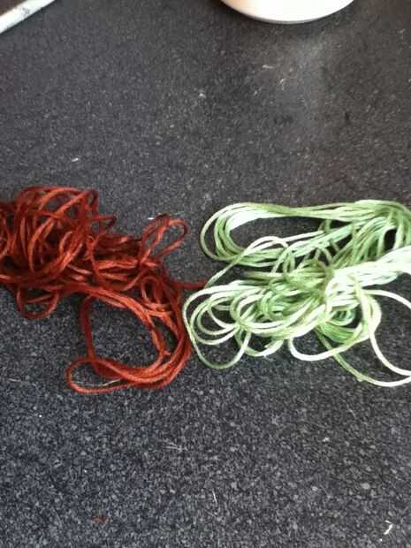 Primero seleccione los colores de hilo de bordar. Elegí un color verde claro y marrón.