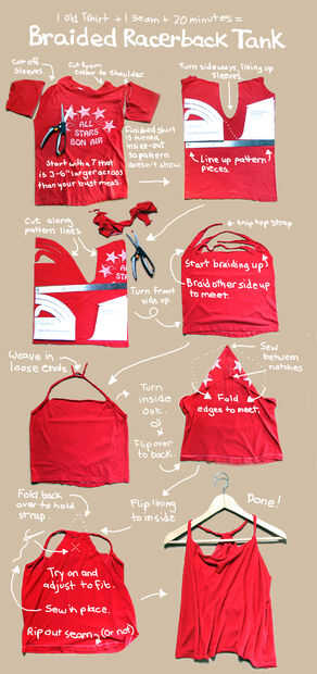 este verano ya ha sido caluroso en gran parte de los Estados Unidos. Para ayudar a combatir el calor que he maquinado de un patrón de costura fácil para hacer un lindo acabado tapa del tanque de una camiseta vieja. Realmente es un tramo para llamar a este un proyecto de costura – hay una pequeña costura 6 pulgadas en todo esto. Por lo que es una empresa totalmente accesible, incluso para un novato de costura. He hecho un gráfico para darle una visión general de cómo todo viene junto. Sigue leyendo para las instrucciones detalladas, del meollo.