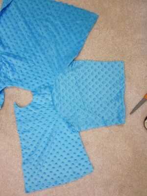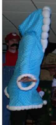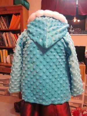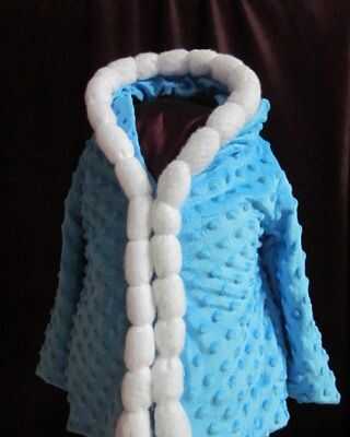 Hay dos diseños diferentes. Uno tiene el pelo blanco burbujas alrededor de la capucha, mangas y parte inferior de la túnica. Hay una versión para niños pequeños con las burbujas de color blanco que va encima del frente y alrededor de la campana. La versión de niño que hice porque odio perder restos de tela y he pensado en un traje de tamaño del bebé sería adorable.