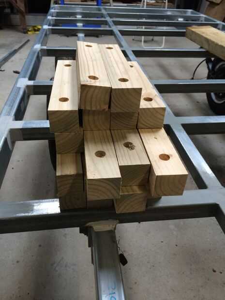 espaciador espesor 50mm riel del chasis principal y dar más apoyo debajo de la cubierta de chapa de acero, buena idea si ponen un coche en el remolque. Utilizamos un durmiente de pino arrancado hasta 50 x 50 mm