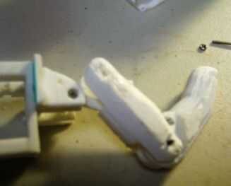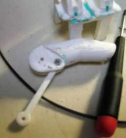 Perno del mecanismo del pulgar a la parte delantera de la cáscara de la mano.