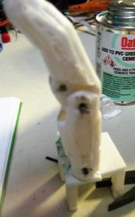 Pegue dos 2 "base para dedos y pulgar" (1) "Montes de sg90servos". Oatey - ABS a PVC (Home Depot y otros, funciona muy bien)
