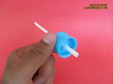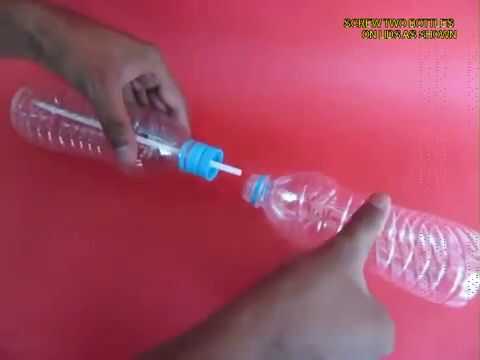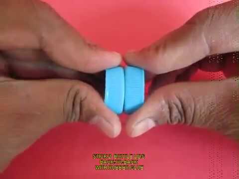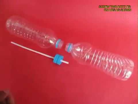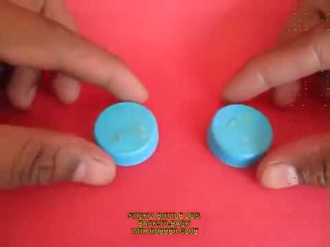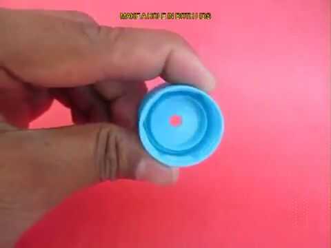 En primer lugar aplicar el pegamento en las 2 tapas y peguen espalda con espalda como se muestra en la figura. ahora hacer hueco en las tapas y luego tomar la paja y ajuste en el agujero como se muestra en fig.now a enroscar 2 botellas 2 tapas tan este fin largo de paja en la botella superior.