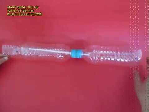 Ahora corte la mitad de la 3ª botella y palillo en la base de la tapa de la botella como se muestra en fig.now hacer los agujeros en las botellas como se muestra en la figura. Ahora nuestra fuente es listo permite probar...!!!!!!