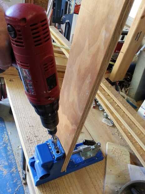 Corte los lados del cajón de la chatarra agujeros bolsillo madera y perforados en las piezas delanteras y traseras. Luego os adjunto la parte delantera y traseras piezas a los laterales con tornillos de bolsillo.
