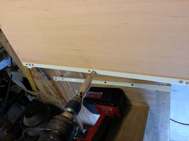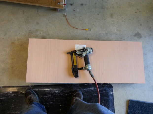 Cortan la parte inferior de algún retal revestimiento de madera que tenía y unido con pegamento y grapas de 1/4".