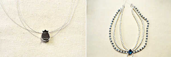 1 º elegir un cabujón de acrílico del rhinestone y cortar tres filamentos de cola de tigre. A continuación, combinar el rhinestone cabochon con los tres hilos de alambre de tigre en secuencia (como se muestra en la imagen);