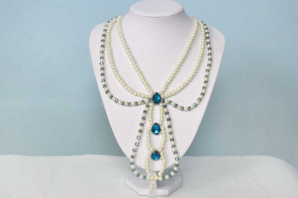 Tres DIY Strand Collar perla azul (7 / 7 paso)