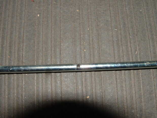 Taladre un orificio de 1/8" en la parte larga de la barra sobre la mitad del camino centraa abajo perpendicular a la curva.