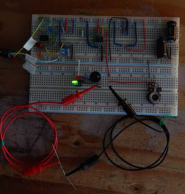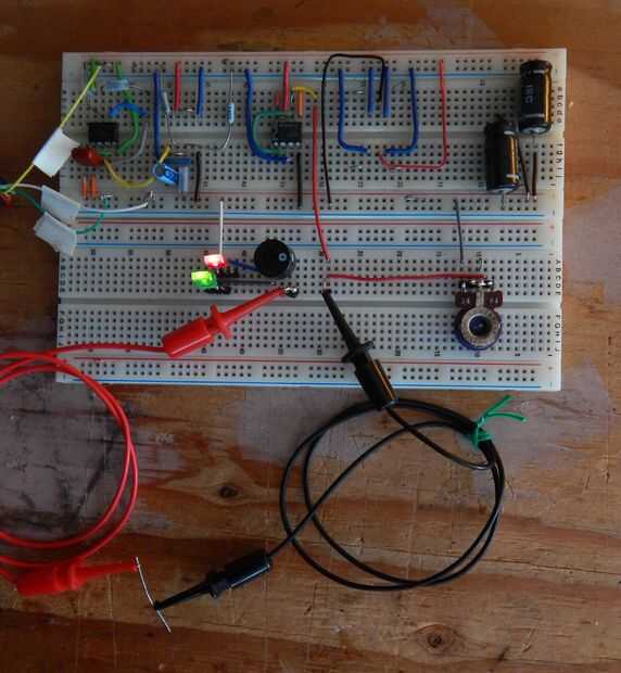 Prueba de un condensador puede o no puede activar los detectores de LED dependiendo de la capacitancia conectado y la frecuencia de su 555 (prueba con componentes bien conocidos puede dar una guía para interpretar la reacción de detectores)