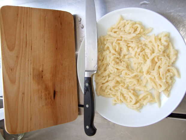 Como se aprecia en la fotografía, no es la manera generalmente estoy haciendo mi spaetzle, por eso son un poco irregulares en tamaño y forma :)