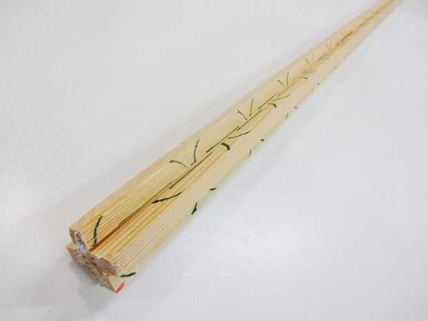 Esta plantilla fue cortada con un cuchillo de la manía y entonces se utiliza para transferir el patrón en la pieza de 2 por 4.
