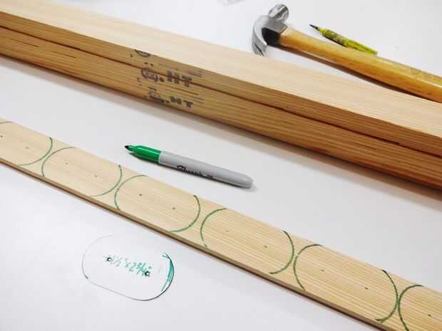 Había trazado este patrón en los centros de agujero marcado en ambos extremos de cada pieza y listones.