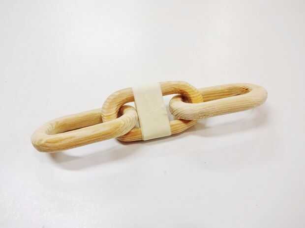 Usando un poco de pegamento para madera, sujetan los enlaces rotos hacia atrás junto con sólidos vínculos intactos entre cada enlace pegado.