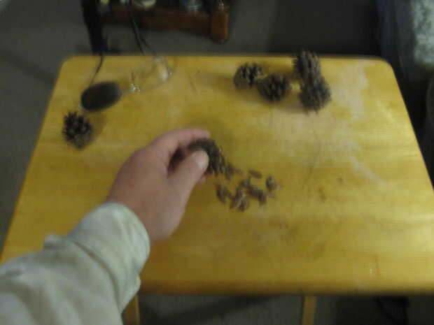Esto abrirá los conos por lo que sólo puede tocar los conos sobre una superficie dura y las semillas caigan.