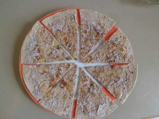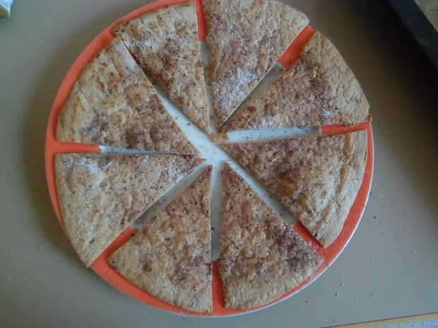 -Espolvorear la mezcla del azúcar de canela a cada lado de la tortilla.