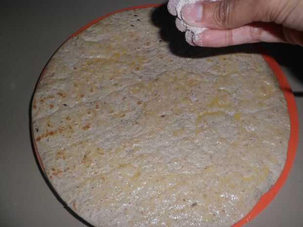 -Con un pincel una capa ligera de mantequilla derretida en ambos lados de la tortilla.