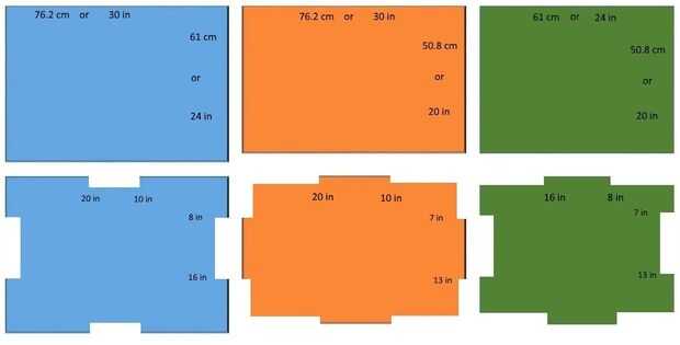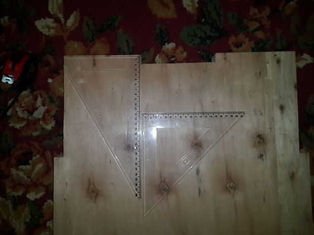-hoja de madera contrachapada y corte 2 piezas de cada uno de 20 "x 30", 24 "x 30" y 20 "x 24".