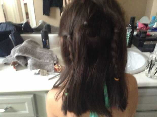 este es un recogido fácil, rápido y divertido. Es grande porque usted puede usarlo cualquier día de la semana, o vestido para una ocasión formal.Paso 1: Dividir el cabello en dos partes. Luego fije una sección de un elástico.Paso 2: Tome la sección s