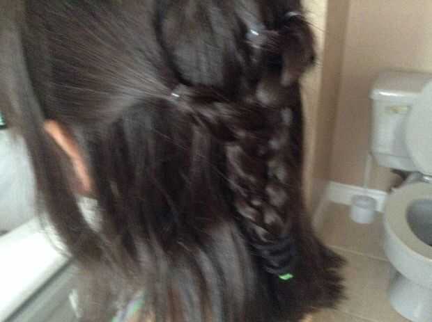 este es un recogido fácil, rápido y divertido. Es grande porque usted puede usarlo cualquier día de la semana, o vestido para una ocasión formal.Paso 1: Dividir el cabello en dos partes. Luego fije una sección de un elástico.Paso 2: Tome la sección s