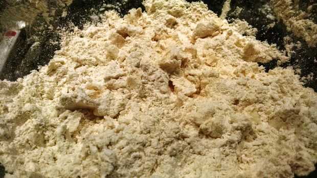 Primero preparar la masa. Tamice la harina y la sal en un tazón grande. Cortar la mantequilla en cubos de 1/2 pulgada y usando que las manos mezclan en la pasta de sal y harina hasta que esté bien incorporado.