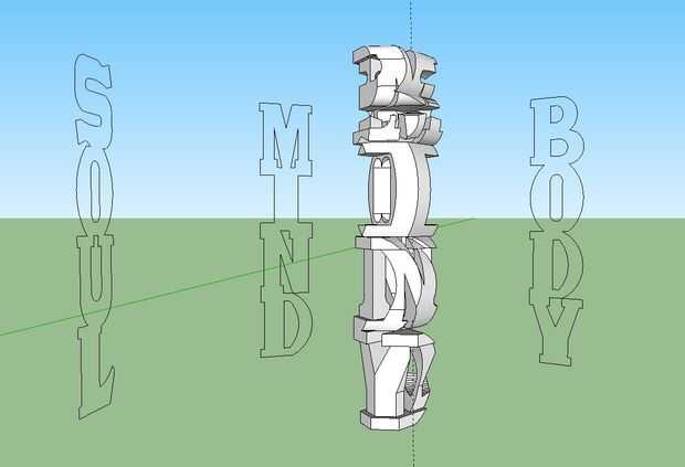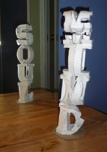 Una vez que tienes cada contorno claramente visible desde la parte delantera y trasera, listo! Desde aquí puede exportar o convertir el archivo en lo que necesites para poder convertirlo en una realidad física. Si no tienes una impresora 3d o molino del cnc, puede utilizar un programa como pepakura designer para convertirlo en un modelo de cartulina para imprimir, como lo hice para mi prototipo físico. Cada conjunto de palabras puede ir juntos diferentes maneras; puede que necesite intercambiar caras para mantener el apoyo. Por ejemplo, si usted tiene una "C" y y "L" compartiendo la misma parte de la escultura, ambos dejan mucho espacio negativo del lado derecho que no puede mostrar el detalle de cualquier carta 3 usted tiene allí. (para mi modelo, tuvo una pareja trata de hacer la parte vertical de la "L" más amplia antes de mostrar el arco completo de la "D") Algunas de las aplicaciones que he pensado de esto fueron los padres con un niño nuevo, o como un regalo de boda, recibiendo el nombre de la novia y el novio con la fecha de la boda en el centro. O usted podría ir más genérico, hacer una torre de "[NULL] energía/sabiduría/valor del Si eres un fan de la serie de videojuegos The Legend of Zelda! Las posibilidades son amplias.